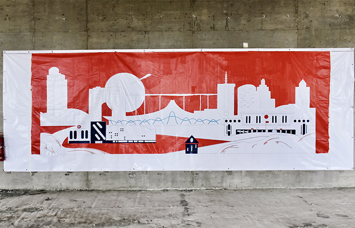 下午2點,涂鴉活動正式開始,公司團(tuán)委精心準(zhǔn)備了一幅長6米寬2米的畫卷,未上色的白底上,黑色線條勾勒出9座建筑,其中8座展示了公司獲得的8個魯班獎,余下一座則是興冶廣場項目一標(biāo)段的兩棟高層建筑。