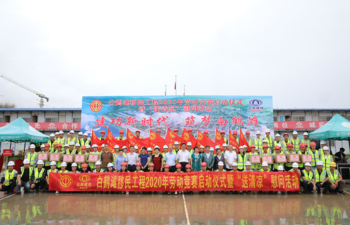 6月29日,由云南省總工會主辦,昭通市總工會、云南建投集團(tuán)工會承辦的白鶴灘移民工程2020年省重點(diǎn)工程勞動競賽啟動儀式暨“送清涼”慰問活動在巧家縣金沙江白鶴灘水電站移民工程北門安置點(diǎn)現(xiàn)場舉行。云南省總工會黨組成員、副主席金勇,昭通市人大委員會副主任、市總工會主席陶天蓉,集團(tuán)黨委副書記、工會主席陳文雙及云南建投集團(tuán)24家參建單位職工代表出席啟動儀式。