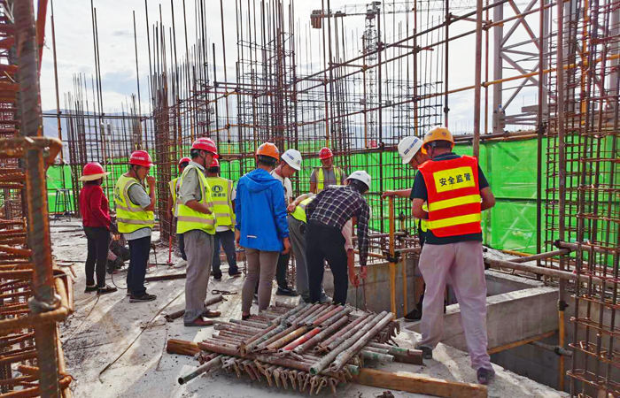 檢查過程中,參會人員對現(xiàn)場施工的10個棟號逐一進行檢查,對檢查過程中存在的施工質(zhì)量問題、安全問題等一一向現(xiàn)場管理人員指出并提出整改方法及預(yù)防措施。雨季到來,針對施工現(xiàn)場容易出現(xiàn)的防汛隱患等問題進行了細致排查和預(yù)防工作安排,對影響正常施工的不利因素和安全隱患作了梳理,避免由于天氣原因?qū)е碌默F(xiàn)場材料損失,影響施工進度。