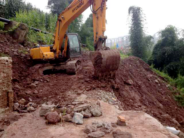 綏江項目部臨時組建了救援隊作為“先頭部隊”趕往受災(zāi)現(xiàn)場,可眼前的一幕讓他們驚呆了,小文橋下方排洪溝阻斷造成鄉(xiāng)鎮(zhèn)道路沖毀三分之一,幾十個村民正冒著暴雨將家中的物資向城里轉(zhuǎn)移;中城鎮(zhèn)鳳池17隊上方泄洪溝已斷裂垮塌,十幾個小伙子正在用鐵鍬冒雨將石塊堵住的泄洪溝挖開。“快!你們幾個去幫老鄉(xiāng)搬運轉(zhuǎn)移,你們幾個跟我到下邊去!”“挖機呢?快把挖機師傅都叫來……”盡管暴雨重重地打在臉上和身上,卻沖刷不掉救援隊員鏗鏘有力的吶喊聲。