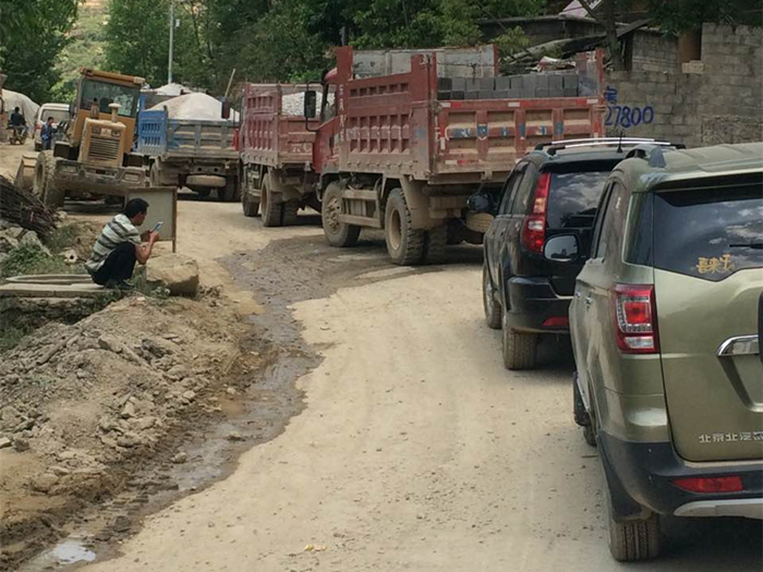 如果說龍頭山項目是因“快”而難,那么樂紅項目就是因為“堵”而難,到過樂紅鎮(zhèn)的每個人對此都深有感觸。項目必經(jīng)的交通要道在地震后路況復(fù)雜,從龍頭山到樂紅鎮(zhèn)的鄉(xiāng)村道路在地震中遭到破壞正在維修,路上擁堵點多。所以盡管項目不大,但由于路況原因交通不暢,各項工作都很難開展。