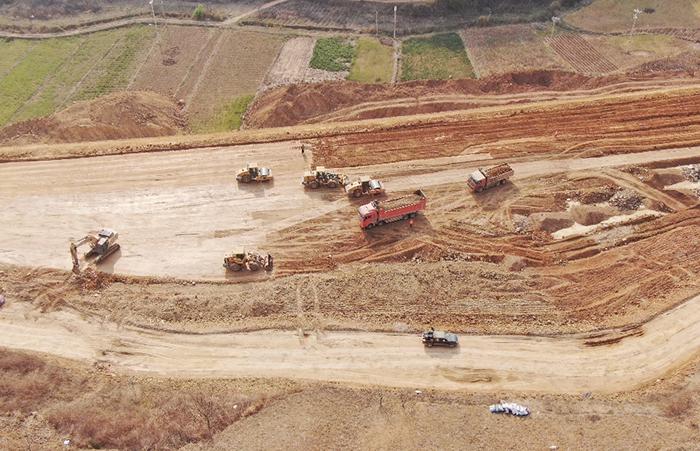施鏈高速二分部大干春季的施工熱潮未退,各個(gè)工作面全面開展,機(jī)械設(shè)備此起彼伏的的轟鳴聲、車水馬龍的運(yùn)輸車輛穿梭在填方區(qū),本項(xiàng)目部路基挖方有83.7萬方,填方106.5萬方,目前路基土石方工程施工正常,為加快填方路基施工進(jìn)度,現(xiàn)場現(xiàn)有45輛渣土車運(yùn)料,保證填方路基有充足填料,同時(shí)要求路基班組夜間加班施工,當(dāng)天的填料必須平整碾壓完成,防止夜間下雨及次日無場地堆放填料,從而保證路基填筑施工進(jìn)度。