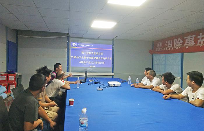 4月12日安二部巧家天生梁子安置區(qū)水電安裝項(xiàng)目部開(kāi)展產(chǎn)業(yè)工人培訓(xùn),培訓(xùn)主題為“提高職業(yè)病防治,加強(qiáng)驛站功能”,項(xiàng)目部管理人員、施工班組人員參加。