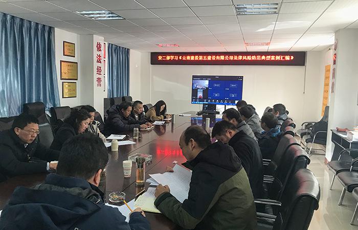 11月30日,安二黨支部組織黨員、在昆職工在直管部會議室集中學習《云南建投第五建設有限公司法律風險防范典型案例匯編》,共18人參與學習。