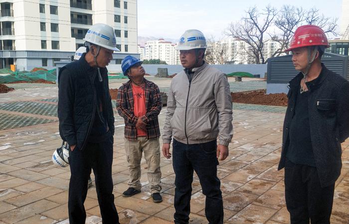在水韻金沙項(xiàng)目,楊永認(rèn)真聽取項(xiàng)目復(fù)工復(fù)產(chǎn)情況匯報,要求項(xiàng)目部加強(qiáng)與防火門、空調(diào)格柵、室內(nèi)刮白及玻璃安裝等班組溝通對接,盡快組織工人進(jìn)場復(fù)工復(fù)產(chǎn),快速完成項(xiàng)目收尾工作。