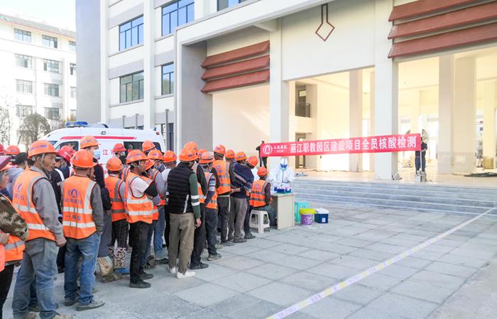 在此過程中,麗江職教園區(qū)項(xiàng)目部積極組織管理人員、在場施工工人和項(xiàng)目部后勤人員共251人進(jìn)行核酸采集,工人們井然有序地排隊(duì)配合醫(yī)護(hù)人員進(jìn)行核酸采集。