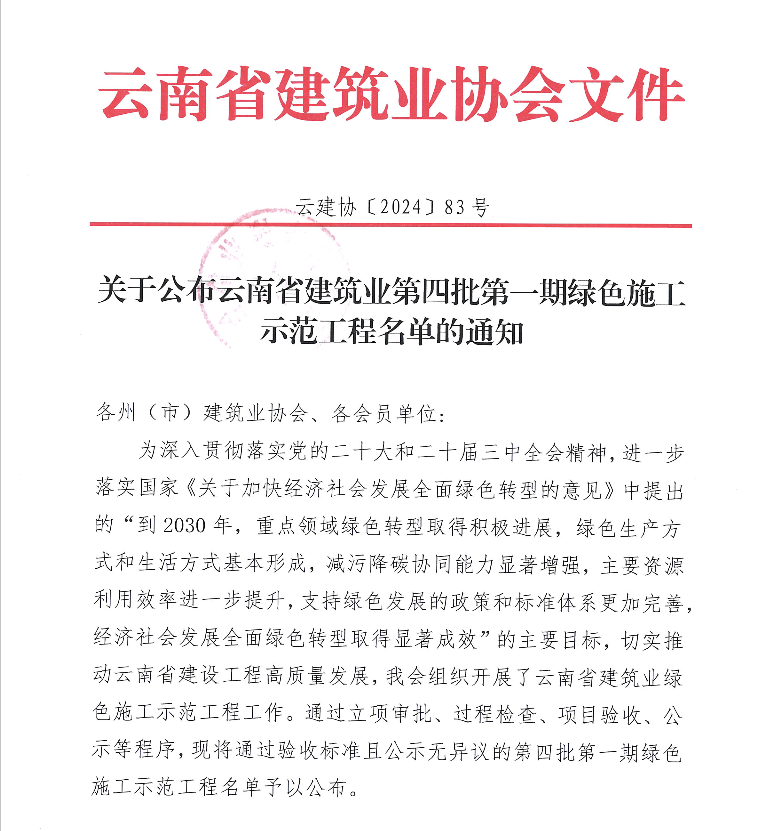 技術支持: 方森科技9月18日,云南省建筑業(yè)協(xié)會公布了第四批第一期綠色施工示范工程名單,由公司承建的云南農(nóng)業(yè)大學工科教學綜合實訓中心建設項目、云南師范大學職業(yè)技術教育實訓基地(一期)建設項目-二標段施工、云南革命軍事館建設項目設計、采購、施工總承包3個項目通過驗收獲云南省建筑業(yè)綠色施工示范工程榮譽。