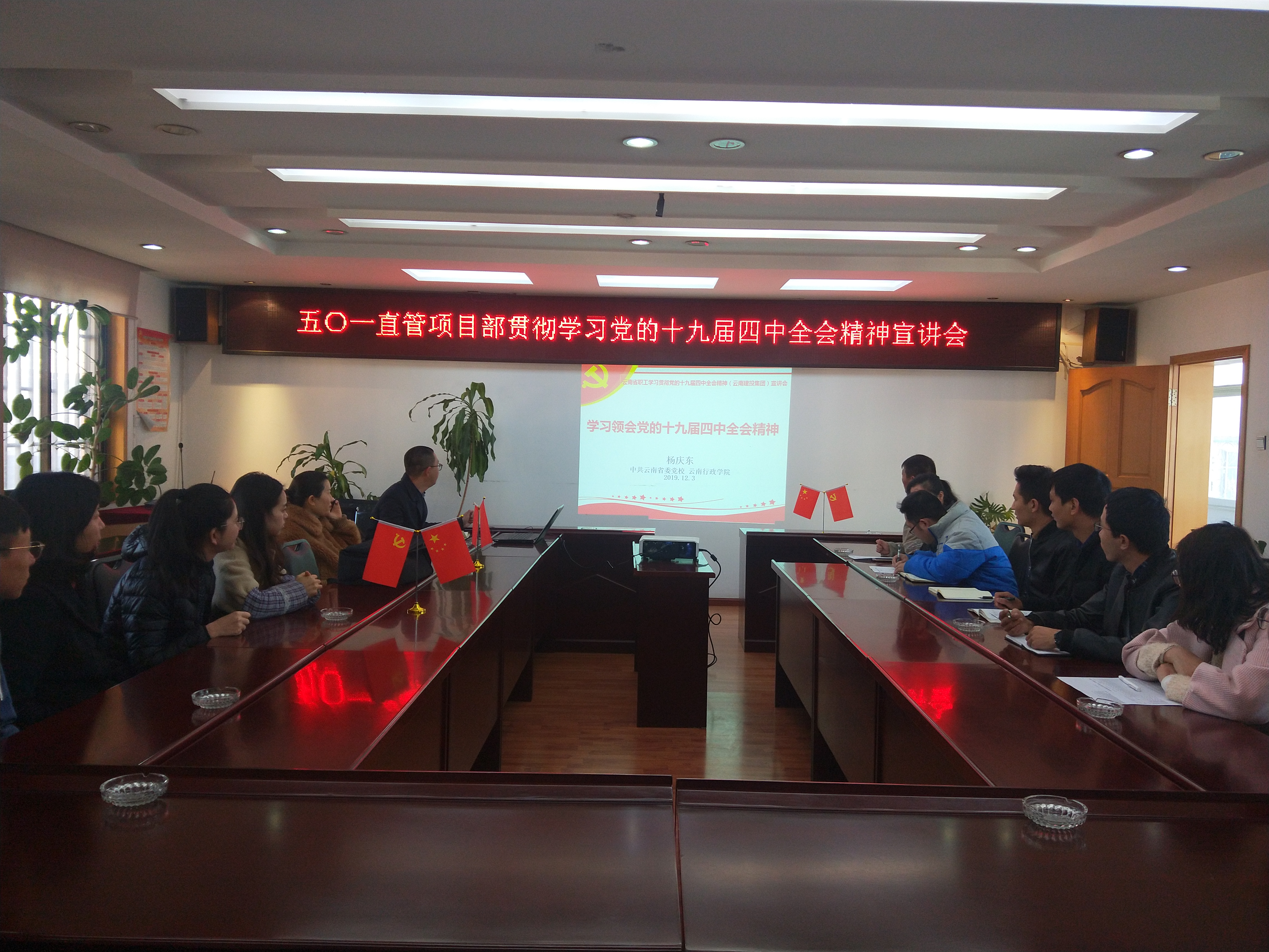 技術支持: 方森科技12月下旬,五〇一直管部開展學習貫徹黨的十九屆四中全會精神宣講活動,學習會議由直管部工會主席施尤俊主持,參與人數(shù)共計89人。