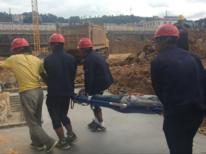 為響應(yīng)集團(tuán)及公司2016年“安全生產(chǎn)月”活動(dòng)號(hào)召,把“強(qiáng)化安全發(fā)展觀念,提升全民安全素質(zhì)”的活動(dòng)主題落到實(shí)處,更好地提高項(xiàng)目部成員處置突發(fā)事故的能力及安全意識(shí)。直管部在演練前,事先確定了演練方案,明確了項(xiàng)目部成員各自在演練中的職責(zé)。下午14:30分,演練正式開(kāi)始,只見(jiàn)一名施工員雙手捂住小腿坐在空地上求救。大家聞聲趕來(lái),把傷員抬上擔(dān)架并有條不紊地開(kāi)展一系列應(yīng)急救援活動(dòng)。演練結(jié)束后,項(xiàng)目部對(duì)演練進(jìn)行了評(píng)價(jià),并對(duì)演練中出現(xiàn)的問(wèn)題進(jìn)行分析解答。
