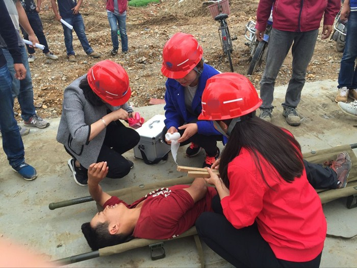 此次演練以腳手架坍塌高處墜落事故為背景展開,“事故”發(fā)生后施工現(xiàn)場(chǎng)負(fù)責(zé)人立即組織搶險(xiǎn)救災(zāi)工作,向醫(yī)院請(qǐng)求醫(yī)護(hù)救援,同時(shí)向項(xiàng)目安全總監(jiān)報(bào)告;項(xiàng)目部安全總監(jiān)立即向公司安監(jiān)部報(bào)告事故發(fā)生情況。一線管理人員及應(yīng)急小組按照現(xiàn)場(chǎng)救援指揮部的指示及《腳手架坍塌事故應(yīng)急救援預(yù)案》的要求行動(dòng),開展救援工作。
