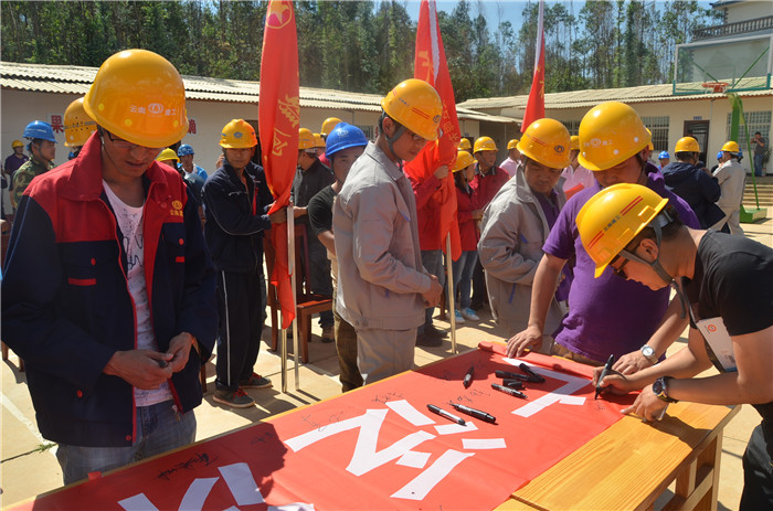 啟動會上,全體人員在安全布標(biāo)上簽名并集體合唱《建投之歌》。