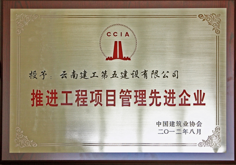 公司榮獲的“推進(jìn)工程項(xiàng)目管理先進(jìn)企業(yè)”證書(shū)