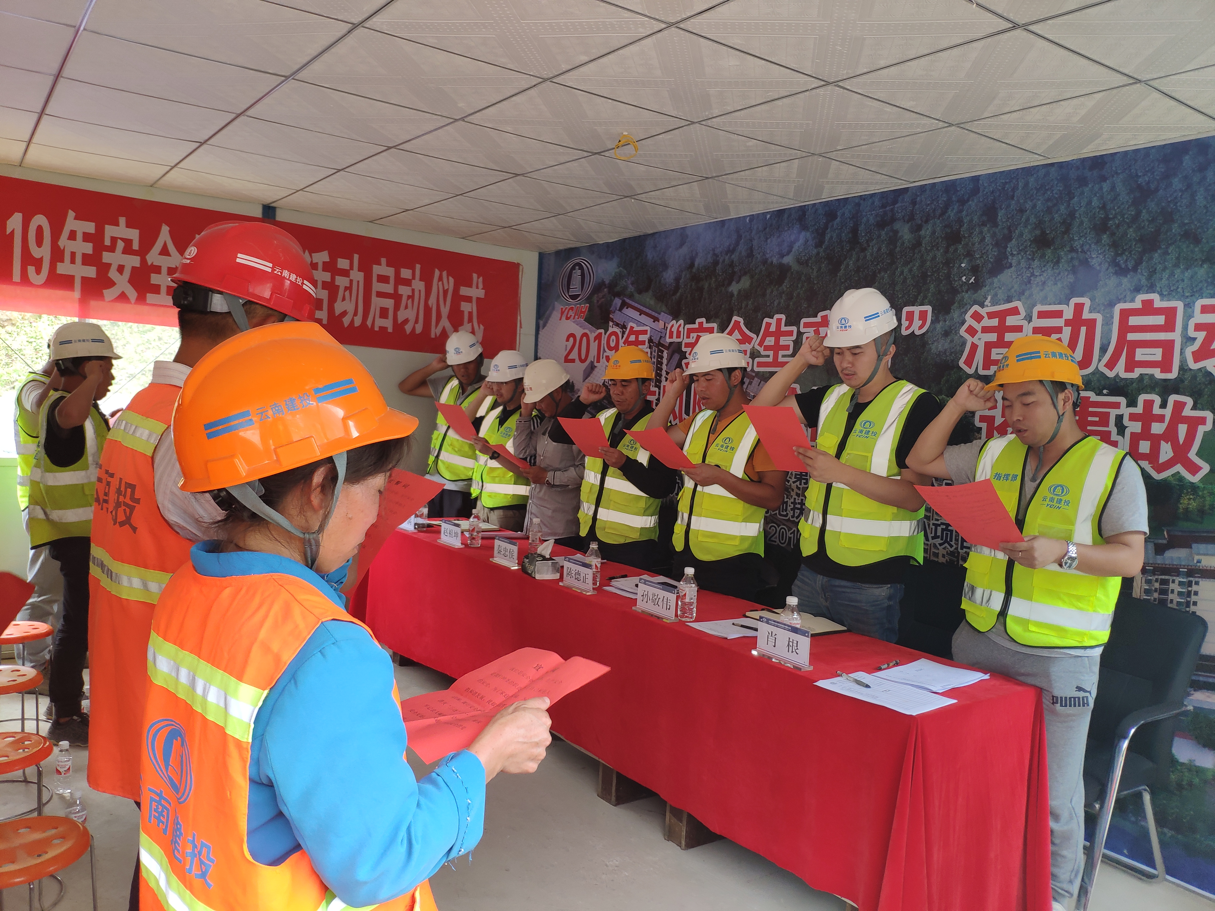 啟動(dòng)儀式上,直管部安全總監(jiān)宣讀了直管部《2019年“安全生產(chǎn)月”活動(dòng)方案》,發(fā)放安全生產(chǎn)月學(xué)習(xí)宣傳資料,全體參會(huì)人員進(jìn)行進(jìn)行“安全生產(chǎn)宣誓”,福貢易地扶貧搬遷江西A項(xiàng)目副經(jīng)理陳永軍代表直管部各在建項(xiàng)目作安全生產(chǎn)承諾等一系列活動(dòng),全面拉開了第四直管項(xiàng)目部安全生產(chǎn)月的序幕。