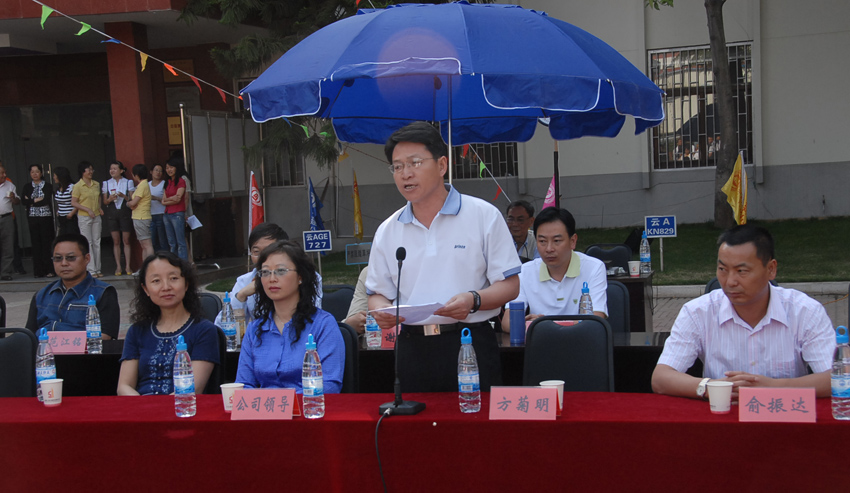 云南建工集團總公司黨委委員、黨委工作部部長陳發(fā)強,工會常務(wù)副主席楊金、黨委工作部副部長高辛尼,總公司機關(guān)黨委副書記戴紅梅,女工委員楊春霞等有關(guān)領(lǐng)導(dǎo)參加了開幕式,并作了熱情洋溢的致辭, 預(yù)祝五公司職工籃球運動會圓滿成功。公司董事長楊福和宣布運動會開幕,公司總經(jīng)理方菊明致辭并為運動會開球。
