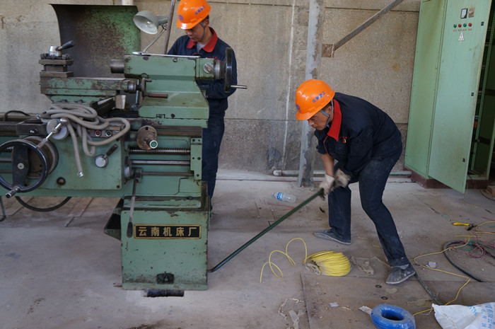 該項目的工程內容為配電屏拆除與安裝、平刨壓設備、鉆床安裝,車床安裝,剪床安裝等。該項目是第二安裝直管項目部獨立經營、獨立承接的項目。項目體量雖然不大,但這是公司時隔多年后再次與天威云南變壓器股份有限公司的合作,所以項目部也非常重視。為此,項目部在進場前特地為8名操作人員定制了工裝,召開了動員會,要求全體人員在施工中注重文明禮貌,服從廠區(qū)的統(tǒng)一管理,制定設備拆裝的安全質量方案,快速高效完成這個項目。