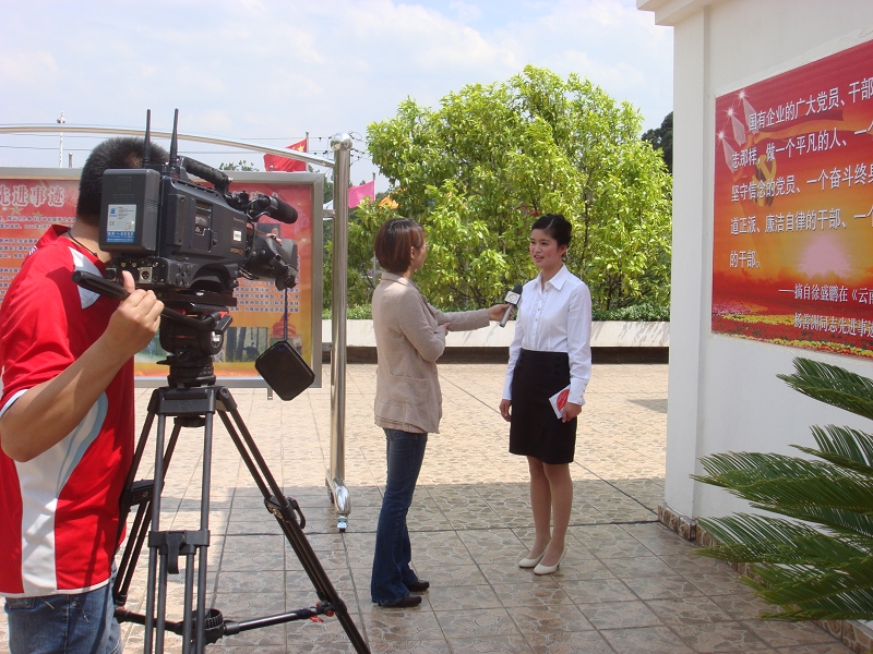圖為李芳艷在比賽間隙接受云南電視臺采訪
