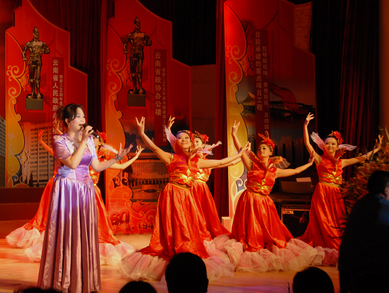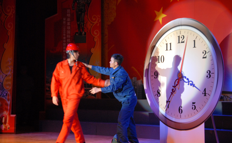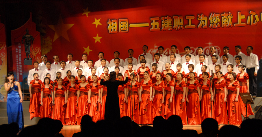 云南建工第五建設(shè)有限公司于9月28日晚在公司禮堂隆重舉辦以《祖國――五建職工為你獻(xiàn)上心中的歌》為主題的文藝晚會,慶祝中華人民共和國建立六十周年。來自公司和基層22個(gè)單位的700多 名職工,共演出了19個(gè)節(jié)目,以飽滿的熱情祝福偉大的社會主義祖國,用嘹亮的歌聲抒發(fā)對偉大祖國的熱愛,以昂揚(yáng)的斗志表達(dá)實(shí)現(xiàn)公司跨越式發(fā)展的決心。云南建工集團(tuán)總公司董事長、黨委書記納杰,副書記、紀(jì)委書記張戰(zhàn)國,工會主席陳文雙,集團(tuán)前黨委書記張平濤等領(lǐng)導(dǎo)和來自集團(tuán)內(nèi)外的嘉賓和五建干部職工一起觀看了演出,并和大家一起放聲合唱《歌唱祖國》。