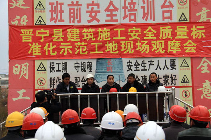 2013年1月17日上午,晉寧縣質檢站組織全縣在建項目的施工單位及相關部門人員到五〇三直管項目部施工的晉寧安企居住區(qū)(第四標段)項目進行現場觀摩。晉寧縣住建系統(tǒng)領導及建設方領導出席了此次觀摩并作了發(fā)言。