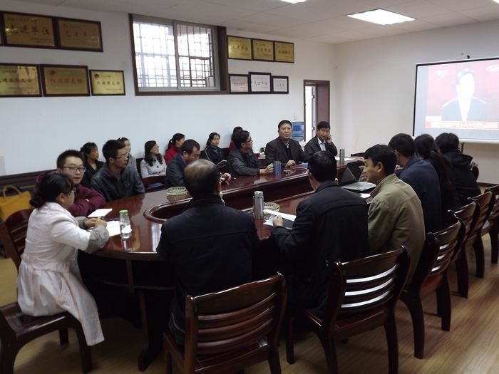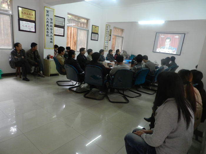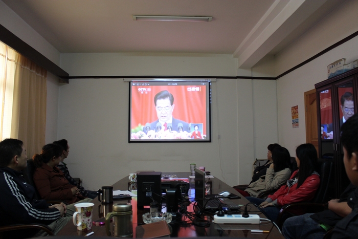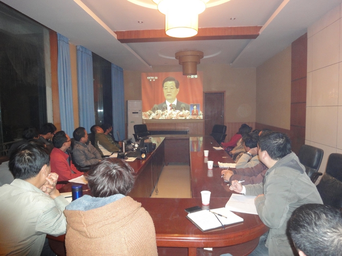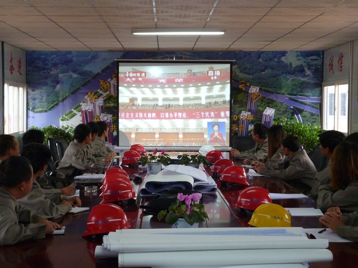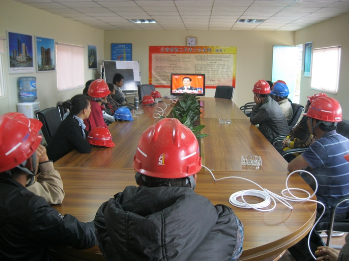 第二直管部舒鉑廣場項目部20名職工收看十八大開幕式