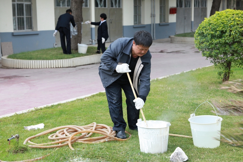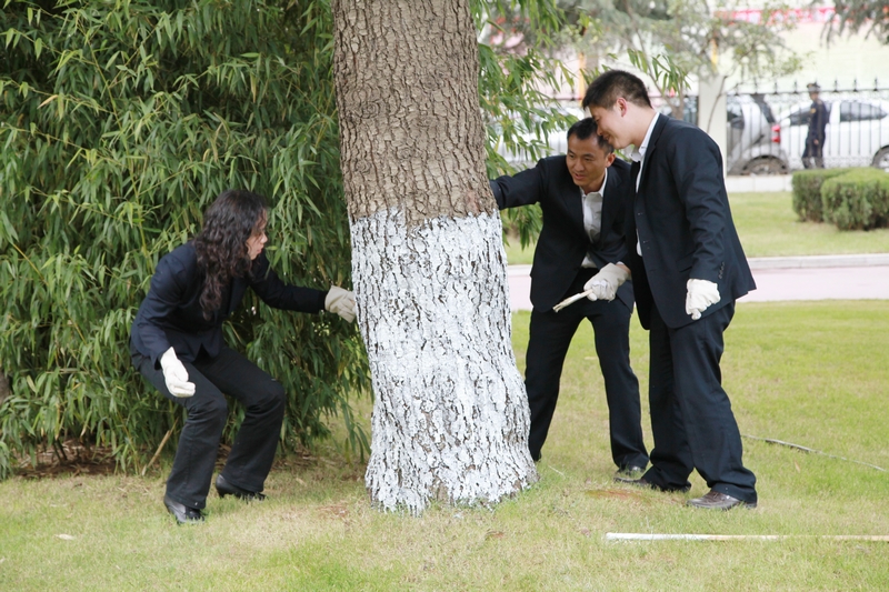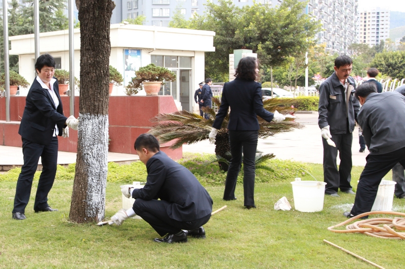 2012年11月7日下午,物業(yè)管理公司全體員工為公司機(jī)關(guān)的綠化樹刷石灰水,刷好的樹木遠(yuǎn)遠(yuǎn)看去,整齊而又漂亮。物業(yè)管理公司將在正常開展工作的情況下,對(duì)公司機(jī)關(guān)及小團(tuán)山生活區(qū)的綠化樹進(jìn)行粉刷行動(dòng),通過這次行動(dòng)來美化職工生活區(qū),喜迎黨的十八大勝利召開。