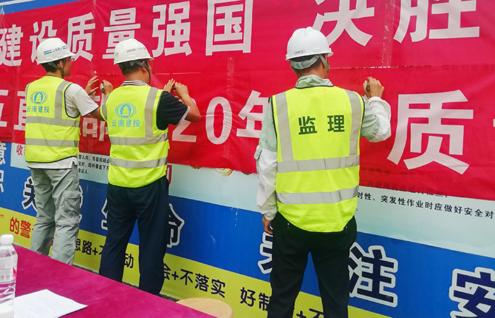 9月12日,第五直管部開(kāi)展以“建設(shè)質(zhì)量強(qiáng)國(guó),決勝全面小康”為主題的2020年質(zhì)量月活動(dòng)啟動(dòng)儀式,該啟動(dòng)儀式分兩個(gè)會(huì)場(chǎng),一是以曲靖棚改、曲靖中安監(jiān)獄、第四監(jiān)獄為一組的曲靖片區(qū)項(xiàng)目,二是以巧家邱家?guī)Z項(xiàng)目為主的昭通片區(qū)項(xiàng)目。