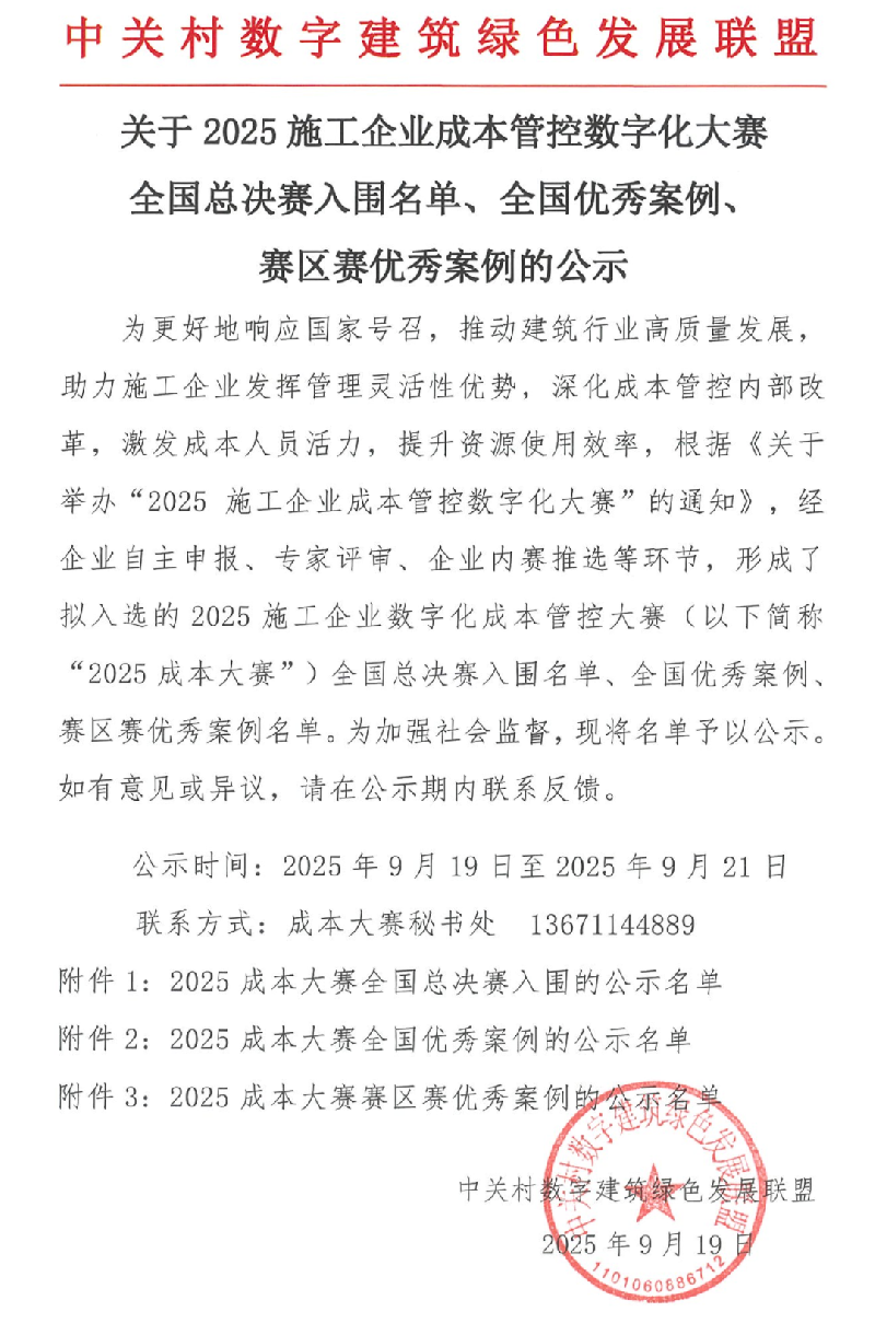 公司兩個項目在“2025年施工企業(yè)成本管控數(shù)字化大賽”中榮獲佳績