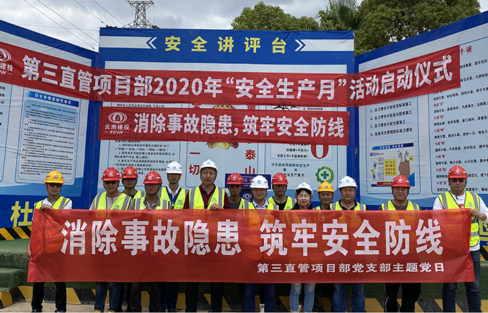6月5日、6日,直八黨支部分別在臨滄碧桂園項目會議室、草海項目部黨員活動室開展了“消除事故隱患,筑牢安全防線”+“黨建助力安全”安全月主題黨日活動,班子成員、科室負責人、項目經(jīng)理和項目管理骨干參加了該次活動,并根據(jù)活動方案在6月份持續(xù)開展“安全月”各項活動。 本次活動分昆明和臨滄兩個片區(qū),分別由黨支部副書記張博和安全總監(jiān)郭喬林帶隊進行。黨支部首先組織與會人員學習觀看2020年全國...