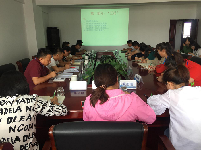 6月17日,圍繞“防風(fēng)險、除隱患、遏事故”安全生產(chǎn)月主題,深入促進(jìn)直管項(xiàng)目部安全生產(chǎn)形勢持續(xù)穩(wěn)定,第九直管項(xiàng)目部經(jīng)理童秀承帶領(lǐng)黨員、二線職工干部學(xué)習(xí)安全生產(chǎn)“五反一加強(qiáng)”專項(xiàng)治理文件,此次黨課共計30人參加。 會議開始,童秀承帶頭手抄“五反一加強(qiáng)”具體內(nèi)容和條文釋義?!翱窗俦椴蝗缡殖槐椤保ㄟ^逐字逐句地抄寫文件內(nèi)容,進(jìn)一步加深全體職工對“五反一加強(qiáng)”內(nèi)容的領(lǐng)悟理解,提高安全生產(chǎn)...