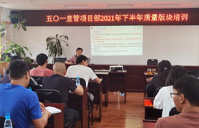 8月20日,五〇一直管項目部在直管部三樓會議室組織開展2021年度第四期業(yè)務版塊知識培訓,直管部領導班子、科室負責人、項目經(jīng)理、項目副經(jīng)理和相關業(yè)務人員共計40人參加培訓。為控制人員大規(guī)模集中,直管部通過釘釘直播的方式同步開展線上培訓。本次培訓圍繞施工現(xiàn)場危險性較大的分部分項工程控制重點及檢查要點、建筑工程結構實體質(zhì)量實測實量知識、印章管理以及施工過程經(jīng)濟管控重點等方面開講。直管部主任工程師肖本風…