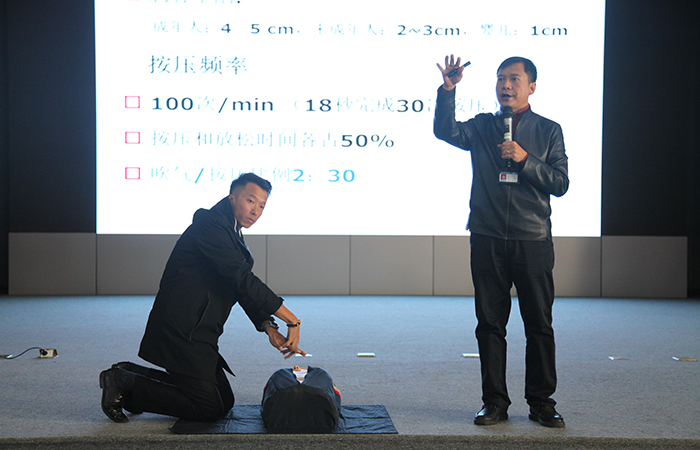 1月15日,公司人力資源部組織職工開展安全健康宣教培訓(xùn),特別邀請中國安全健康教育中心主任武宏宇授課,100名公司職工參與培訓(xùn)。 “工作時,遇到突發(fā)中暑、外傷的情況如何急救?”“游泳時,遇到溺水突發(fā)情況如何自救互救?”武宏宇利用PPT,結(jié)合生動實例,將可能會遇到的突發(fā)事件及有效急救措施向大家進行介紹,并重點講解了 “心肺復(fù)蘇”、“人工呼吸”、“猝死”等常用的急救知識和技能…