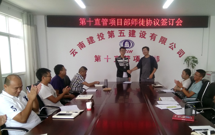 8月26日上午,第十直管項(xiàng)目部舉行2019年度新入職員工“師帶徒”協(xié)議簽署儀式。直管部經(jīng)理方云波、 直管部副經(jīng)理鄭開盛、 主任經(jīng)濟(jì)師羅亞玲等直管部班子成員、各科室負(fù)責(zé)人和項(xiàng)目經(jīng)理參加簽署儀式 。 本次“師帶徒”協(xié)議簽署儀式秉承省建五公司“用人、育人、留人”的人才理念,為施新穎、鄢茹丹、何彩霞、王一涵、周楊五名新員工安排了幫帶…