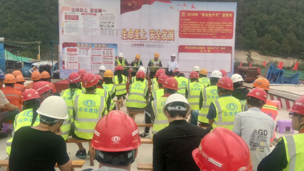 為響應(yīng)公司2018年關(guān)于加強(qiáng)安全生產(chǎn)工作的決策部署,6月4日下午,彌玉高速象山試驗(yàn)段在甸基壩大橋梁場(chǎng)召開以“生命至上,安全發(fā)展”為主題的2018年安全生產(chǎn)月啟動(dòng)儀式。 本次啟動(dòng)儀式由項(xiàng)目部安全總監(jiān)主持,參加人員除了項(xiàng)目部所有管理人員和各施工隊(duì)負(fù)責(zé)人以外,還包括云南彌玉高速公路投資開發(fā)有限公司及監(jiān)理公司安全部的相關(guān)負(fù)責(zé)人。 本次安全生產(chǎn)月活動(dòng)緊緊圍繞“生命至上,安全發(fā)展...