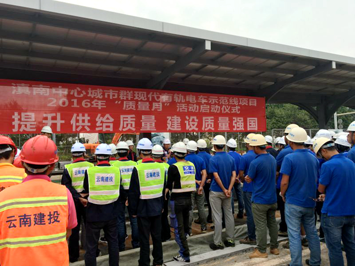 蒙自有軌電車項(xiàng)目部參加“質(zhì)量月”活動(dòng)啟動(dòng)儀式