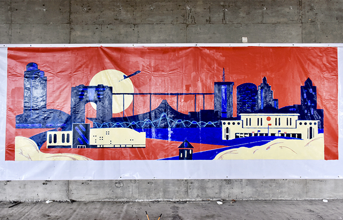 下午2點,涂鴉活動正式開始,公司團(tuán)委精心準(zhǔn)備了一幅長6米寬2米的畫卷,未上色的白底上,黑色線條勾勒出9座建筑,其中8座展示了公司獲得的8個魯班獎,余下一座則是興冶廣場項目一標(biāo)段的兩棟高層建筑。