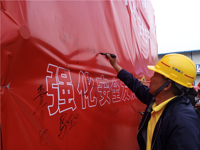 動員會后所有參會人員在安全布標(biāo)和倡議書上簽字,項目部還組織了項目班組人員在會議室觀看了安全教育片《痛思》。