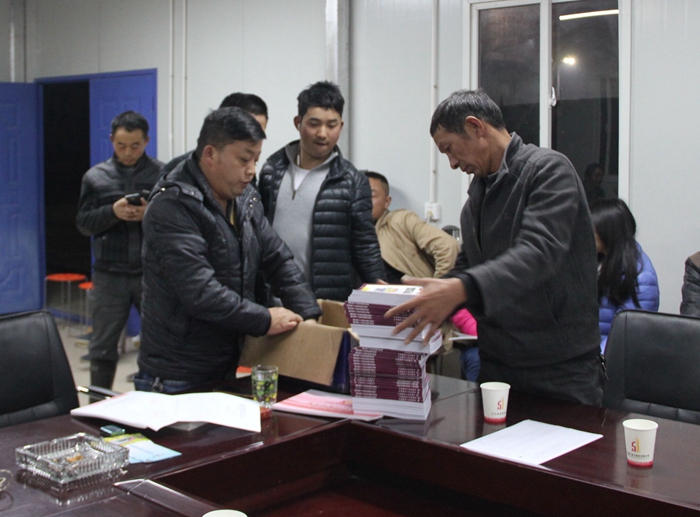 直管部工會(huì)主席王波給現(xiàn)場(chǎng)參會(huì)人員發(fā)放《消防安全知識(shí)宣傳冊(cè)》