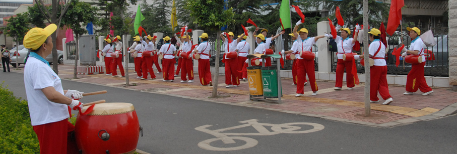 退休女工腰鼓隊(duì)為開閉幕式增添了喜慶氣氛。