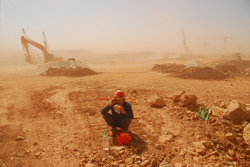 圖為高玉和作品《五公司滾滾紅塵——風中的工地》