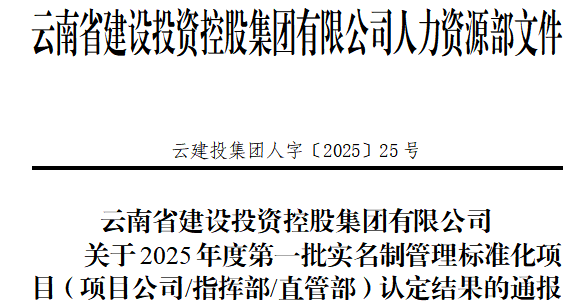 近日,集團(tuán)通報(bào)了2025年度第一批建筑工人實(shí)名制管理標(biāo)準(zhǔn)化項(xiàng)目(項(xiàng)目公司/指揮部/直管部)認(rèn)定結(jié)果,公司承建的5個(gè)項(xiàng)目成功通過(guò)集團(tuán)實(shí)名制管理標(biāo)準(zhǔn)化項(xiàng)目認(rèn)定,分別是第一直管部保山某項(xiàng)目、第二直管部云南農(nóng)業(yè)大學(xué)學(xué)生食堂(稷香園)建設(shè)項(xiàng)目、第七直管部五華區(qū)數(shù)字經(jīng)濟(jì)產(chǎn)業(yè)園西北新城園區(qū)項(xiàng)目、第八直管部文山職業(yè)技術(shù)學(xué)院產(chǎn)教融合實(shí)訓(xùn)基地項(xiàng)目。自集團(tuán)啟動(dòng)建筑實(shí)名制管理標(biāo)準(zhǔn)化項(xiàng)目認(rèn)定工作以來(lái),公司以“六制一金一表”…