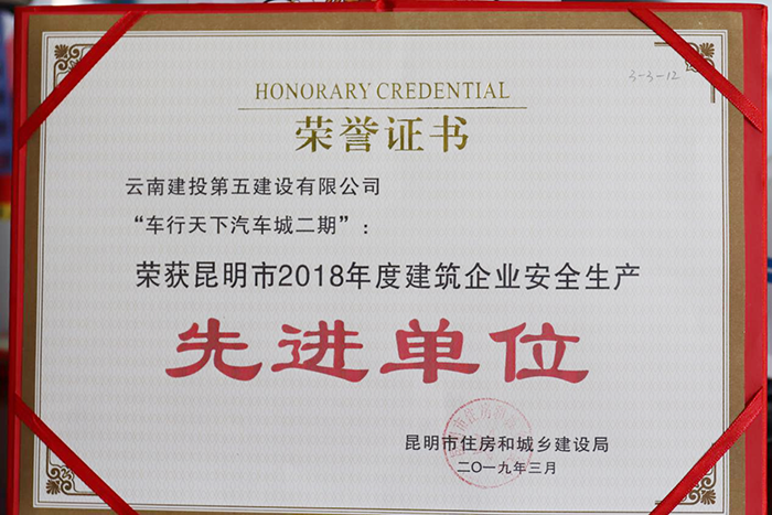 近日,在昆明市住房和城鄉(xiāng)建設(shè)局召開的2018年度建設(shè)工程質(zhì)量管理、安全生產(chǎn)、文明施工及揚(yáng)塵治理管控總結(jié)暨2019年度工作安全部署會議上,表彰了一批先進(jìn)項(xiàng)目和個人。其中,車行天下項(xiàng)目部榮獲“昆明市2018年度建筑企業(yè)安全生產(chǎn)先進(jìn)單位”和“昆明市2018年度建設(shè)施工安全生產(chǎn)標(biāo)準(zhǔn)化工地”兩項(xiàng)大獎,項(xiàng)目經(jīng)理汪家順榮獲“昆明市2018年度建筑企業(yè)安全生產(chǎn)先進(jìn)個人”榮譽(yù)稱號。 據(jù)了解,車行天...