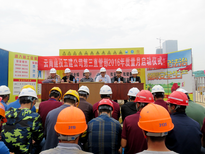 2016年9月14日,五〇七直管項目部承建的官渡區(qū)五里中央商務(wù)區(qū)(CBD)建設(shè)項目A22地塊主體工程施工(一標(biāo)段)開展“質(zhì)量月”活動。 活動中,直管部質(zhì)量科長張劍宣讀了公司關(guān)于開展2016年“質(zhì)量月”活動的通知,以及五〇七直管項目部2016年質(zhì)量月活動方案,傳達了直管部關(guān)于培訓(xùn)學(xué)習(xí)技術(shù)規(guī)范的計劃。項目技術(shù)負責(zé)人楊濤就公司關(guān)...