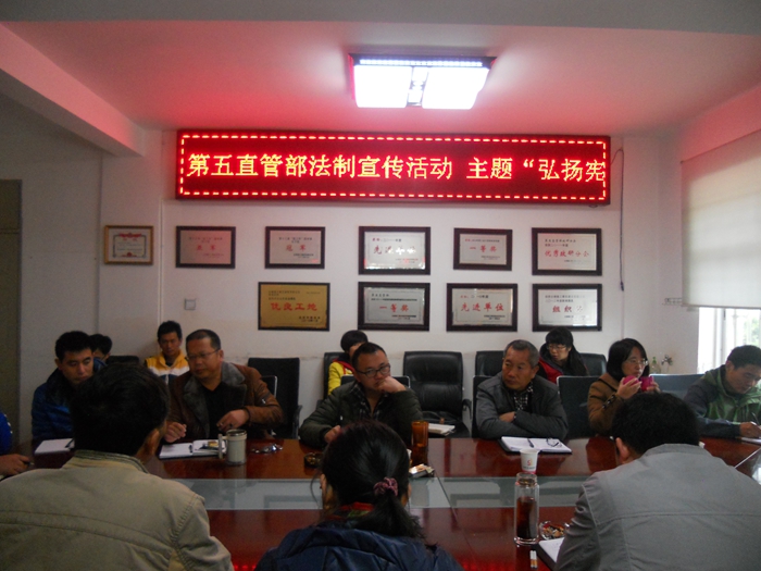 12月7日,第五直管項(xiàng)目部依次在昆明片區(qū)項(xiàng)目部及元江項(xiàng)目部開展法制宣傳活動。 直管部昆明片區(qū)法制宣傳活動于7日上午利用周例會開展,直管部領(lǐng)導(dǎo)班子成員、科室負(fù)責(zé)人、項(xiàng)目經(jīng)理共18人參加,元江項(xiàng)目部活動利用晚上綜合大檢查會議開展,直管部領(lǐng)導(dǎo)班子成員、管理人員共34人參加。 本次活動主要圍繞...